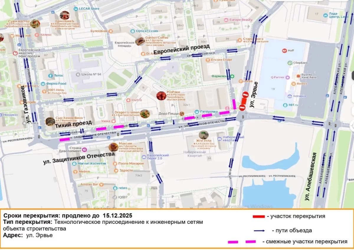 В связи со строительством тепловой сети сроки перекрытия дороги на улице Ю.-Р.Г. Эрвье в районе пересечения с улицей Защитников Отечества продлены до 15 декабря 2025 года.