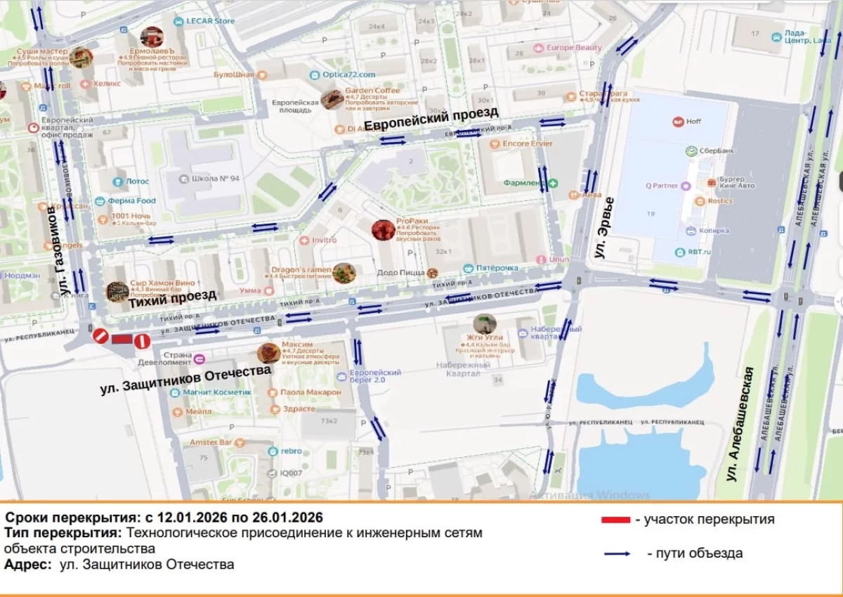 С 12 по 26 января в Тюмени будет закрыт проезд по улице Защитников Отечества в районе перекрестка с улицей Газовиков. Ограничения связаны с продолжением строительства тепловой сети — работы возобновляет компания УСТЭК.