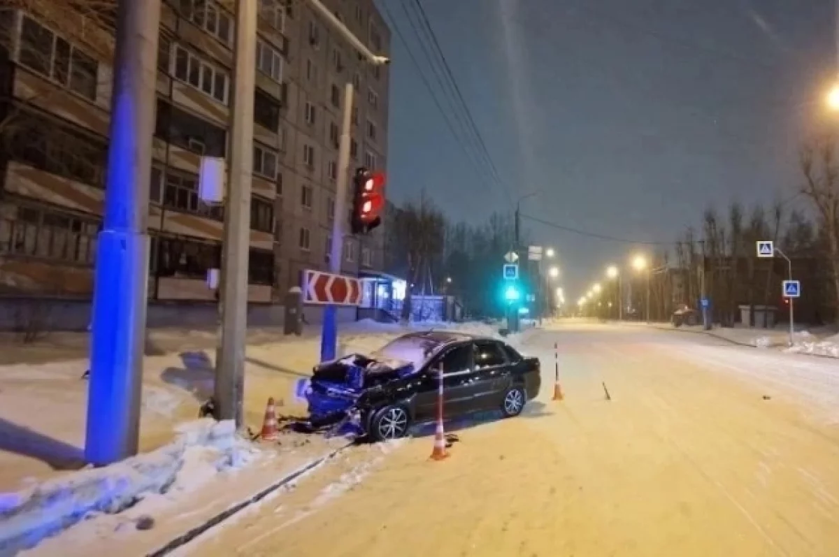 Ночью в Тюмени легковой автомобиль врезался в опору освещения. Авария произошла около трех часов на улице 30 лет Победы, в районе дома №92.
