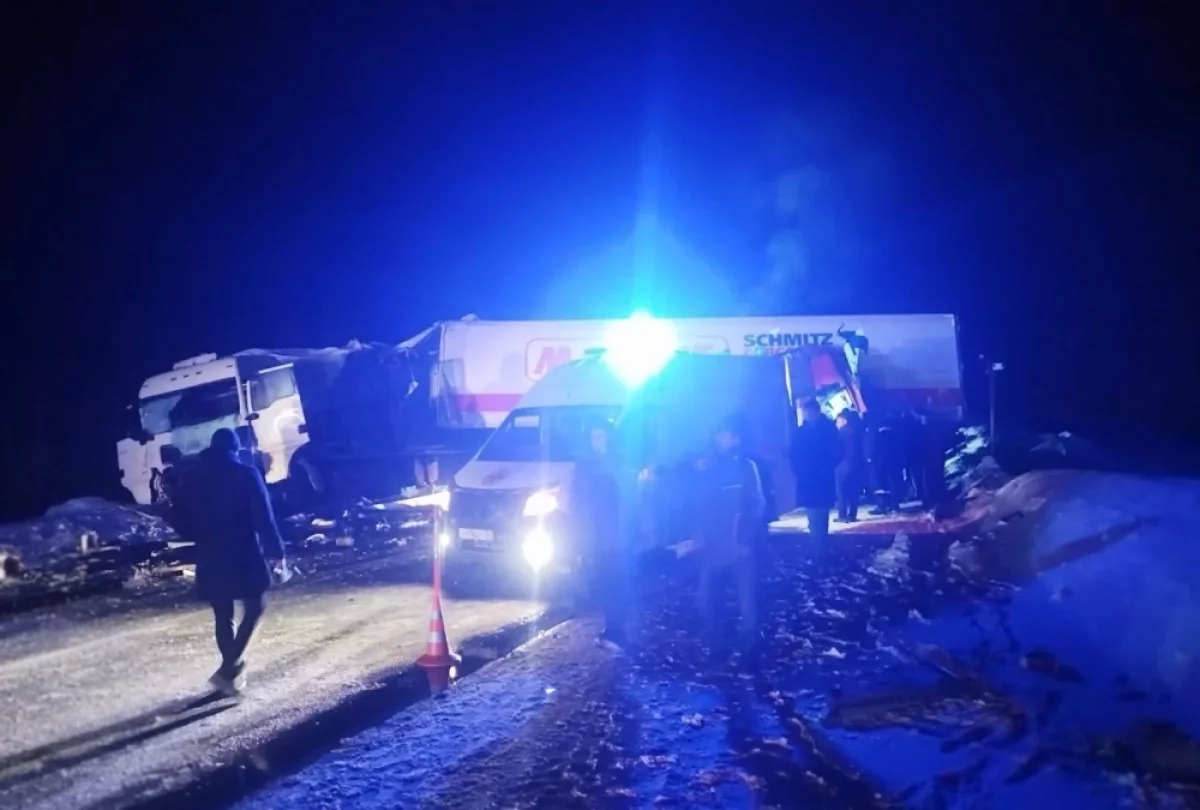Предварительно, в результате ДТП водитель одного из грузовиков погиб. На месте аварии работают инспекторы.