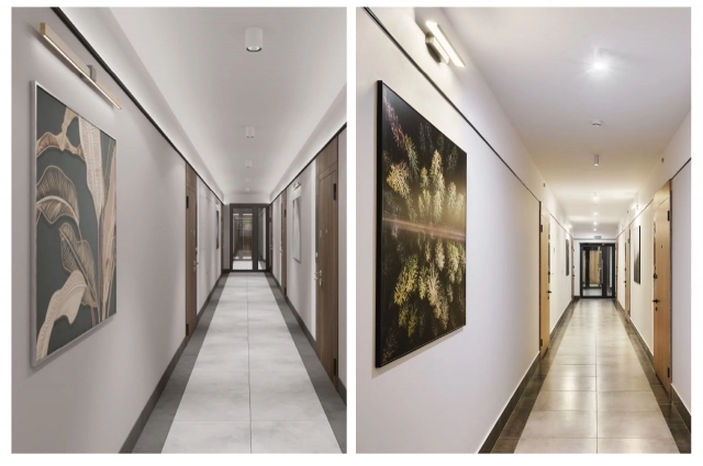 Как и на улице, внутри домов преобладают теплые пастельные тона, отсылающие к природным оттенкам. На стенах – тематические постеры и навигация для дополнительного уюта и комфорта резидентов.