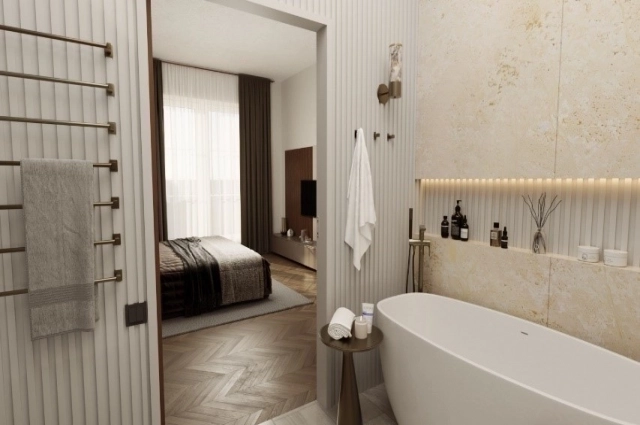 Такие комнаты удобны тем, что не нужно по утрам выстаивать очередь в душ или сталкиваться лбами с родственниками возле шкафа. Недостаток можно назвать только один, если в паре разный график сна и пробуждения, то шум сборов на работу могут помешать спящему. Но это тоже решаемый вопрос – усиленная шумоизоляция.