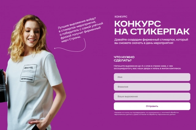В рамках конкурса лучшие выражения войдут в стикерпаки мероприятий, а авторы самых улетных фраз получат фирменный мерч Страны. Для участия нужно написать выражение до 4-х слов в специальном поле на сайтах мероприятий (Домашний и Сердце Сибири), с чем ассоциируются у вас дворы и жизнь в жилых комплексах Страны. Фирменные стикерпаки можно будет скачать в дни проведения событий.