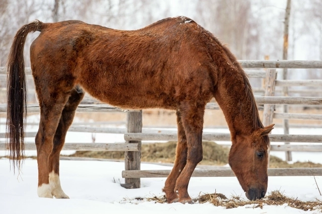 В 20 км от областного центра в селе Горьковка расположился центр «Рыжий конь», на въезде меня встречает левада — за деревянным ограждением пасется табун лошадей. Молодые скакуны с переливающимся окрасом наравне со старенькими животными сначала замерли, а потом зашевелили ушами и с любопытством посмотрели в сторону незнакомки. Я приехала на конюшню в морозный декабрьский день, поэтому некоторые животные были в теплых накидках. Основательница центра и по совместительству ветеринар с 30-летним стажем Светлана Колмогорова, объяснила необходимость «шубок» тем, что у животных короткая шерсть и они нуждаются в дополнительном обогреве.