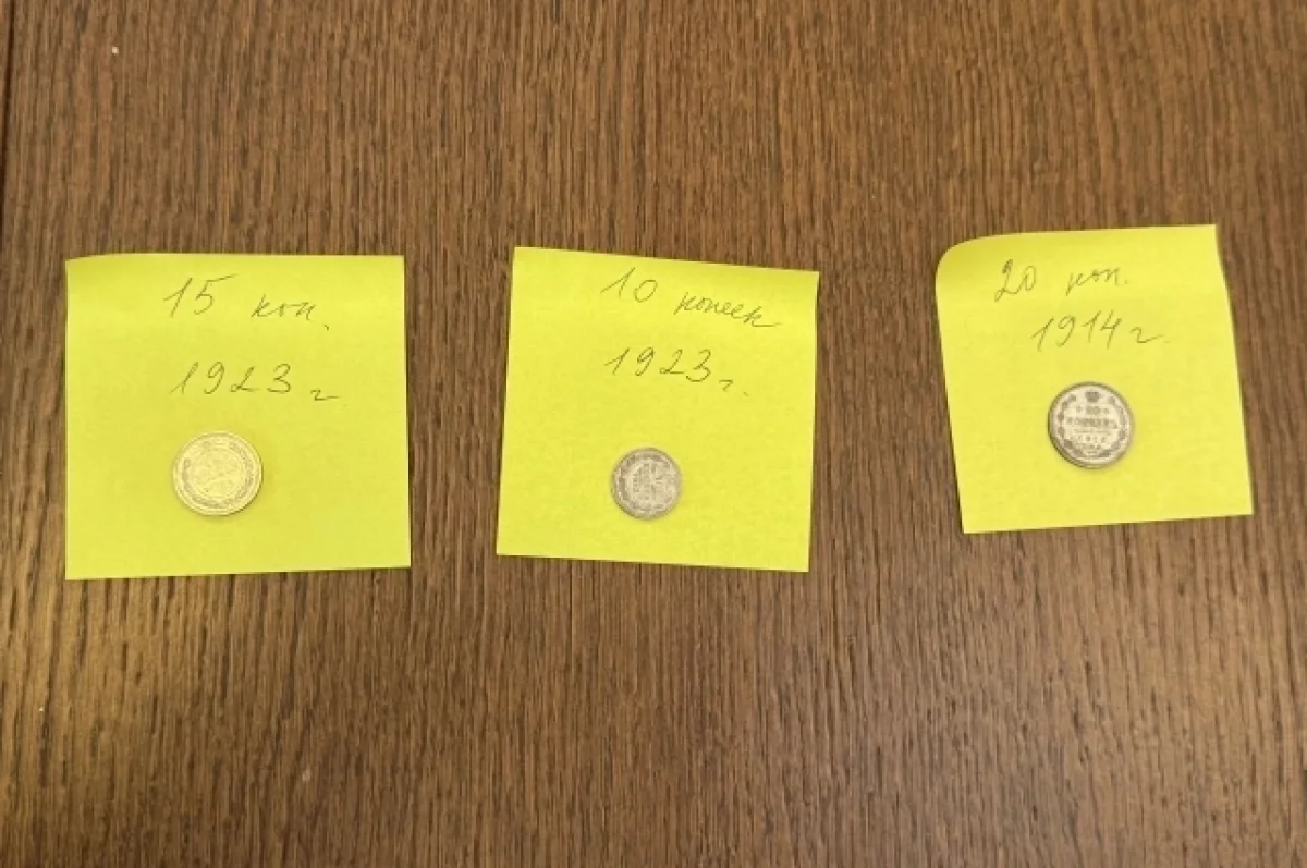 Три монеты начала XX века, изъятые на таможне, переданы представителям Министерства культуры России. Речь идет о номиналах 10, 15 и 20 копеек, датированных 1914 и 1923 годами.
